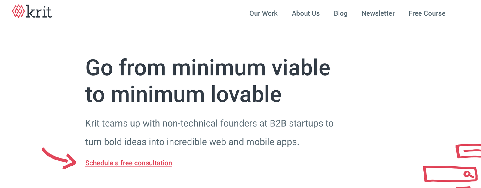 At Krit, our introductory service was a Roadmapping Session for new products, or a Design Audit for existing products. We aimed for this service to cost 10% of a typical, larger engagement with us. We structured these so that several of the deliverables were valuable on their own whether you continued working with us or not, but the final deliverable was a detailed estimate and timeline for a larger project together.