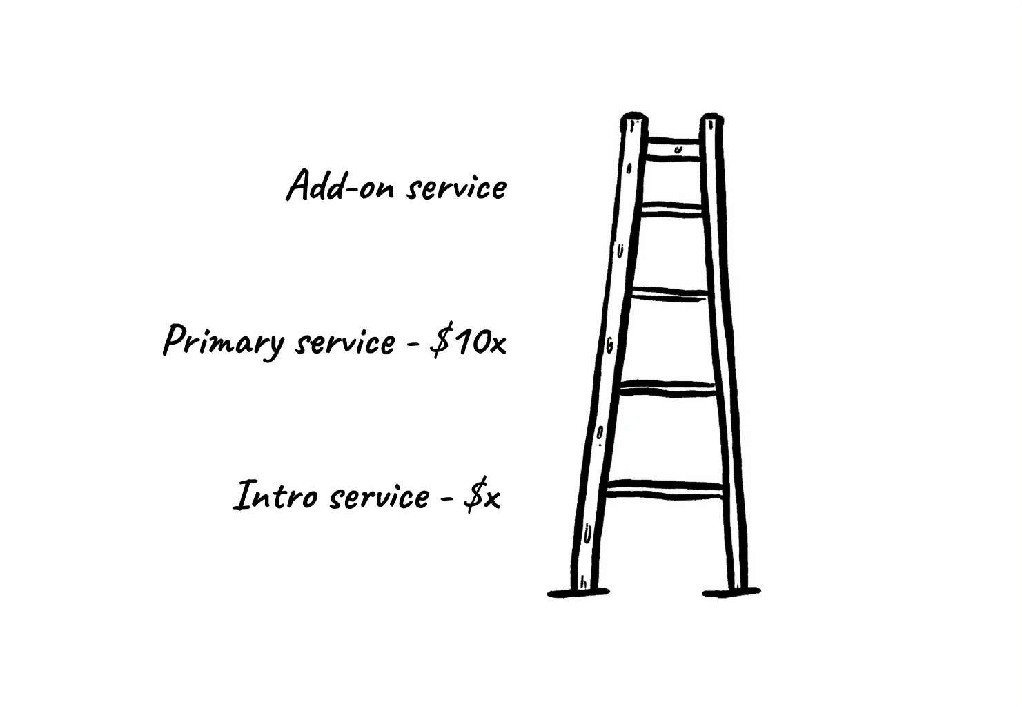 Build a pricing ladder, starting with an introductory service offer that has the potential to grow 10x or more into larger or ongoing services.