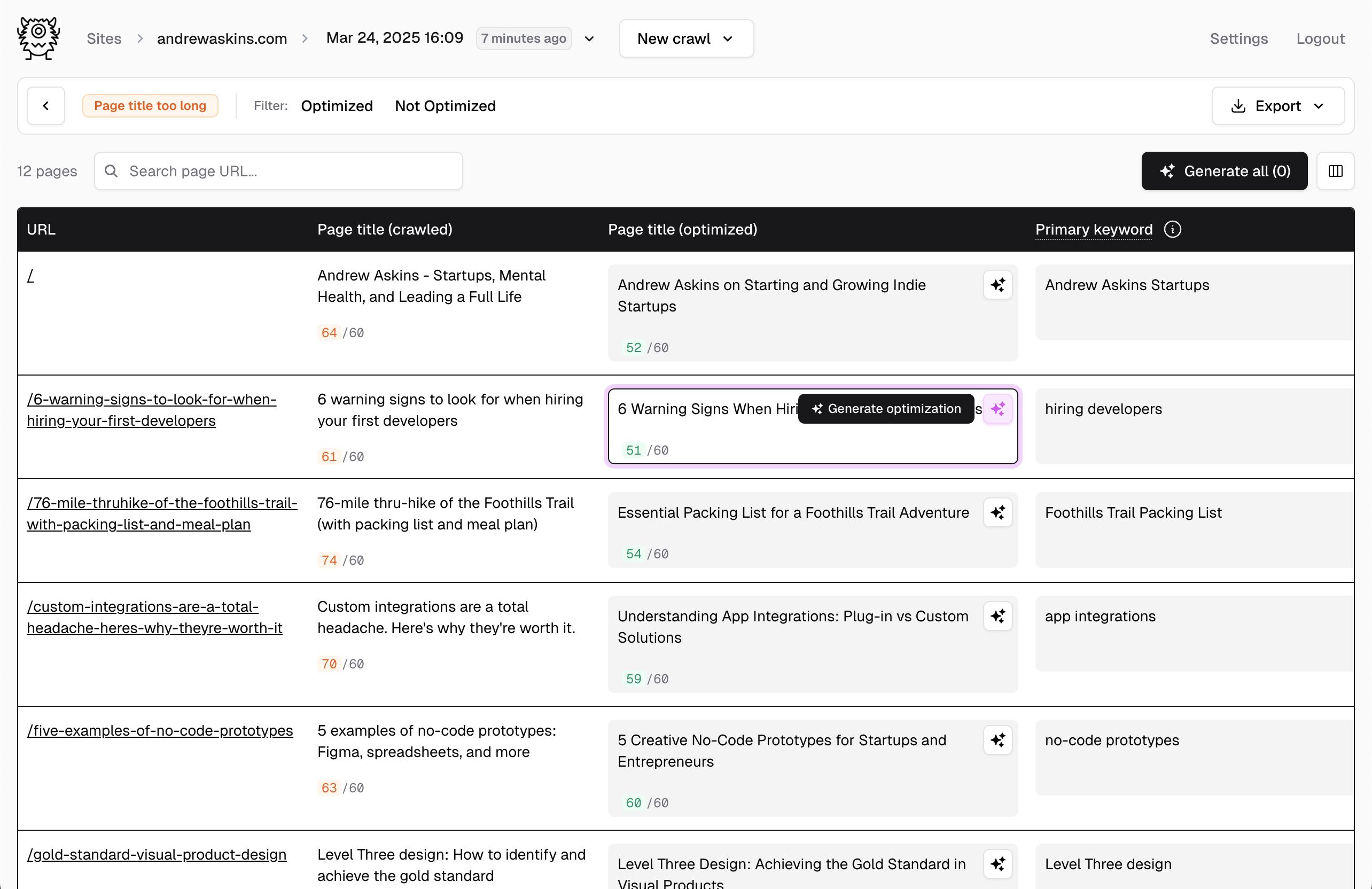 Generate SEO-optimized metadata for your clients fast with the AI-powered web crawler that finds and fixes issues for you.