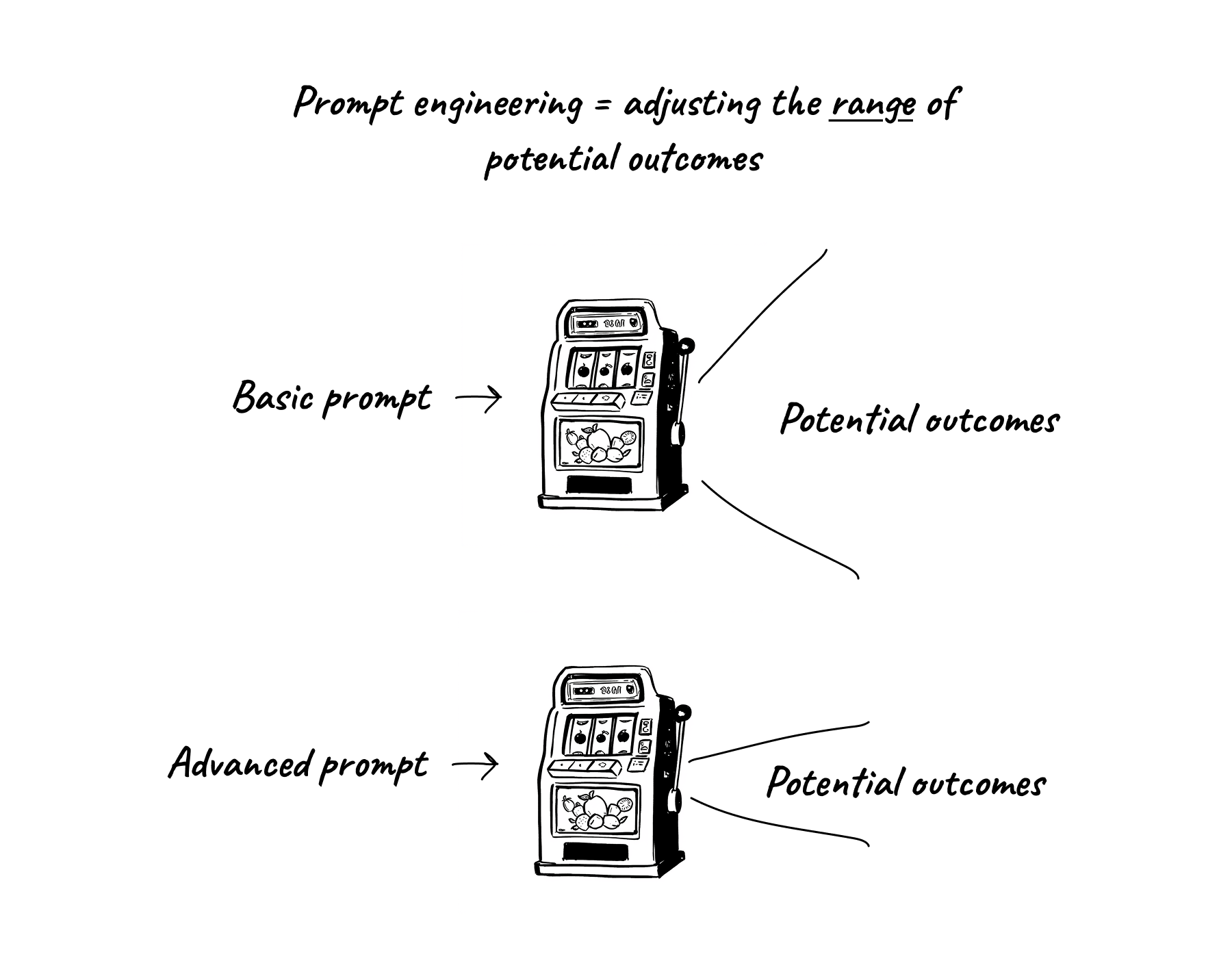 But you will never narrow the range to one; there is always an element of randomness involved. And like a slot machine, each LLM has biases inherent in its probabilities that you may have to overcome.